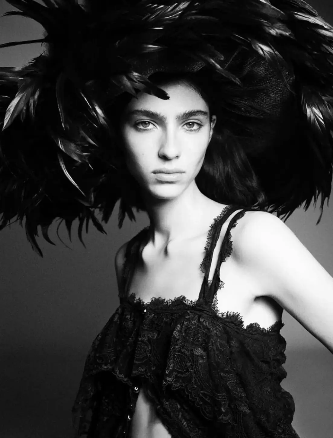Лоли Баия на фотосессии для Harper's Bazaar великолепно выглядит под объективом Карима Садли. В наибольшем впечатлении черно-белый снимок с моделью в головном уборе из перьев.