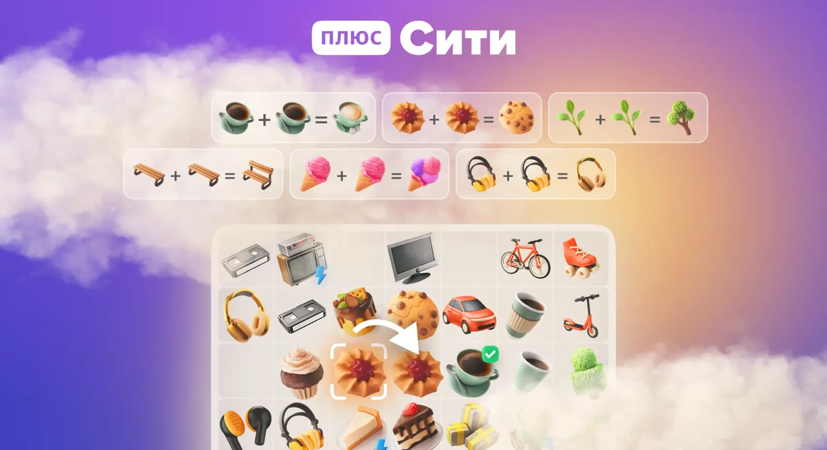 Команда «Плюс Сити» добавила новую игру «Комбинатор», где пользователи могут выполнять заказы от жителей, объединяя предметы на игровом поле.